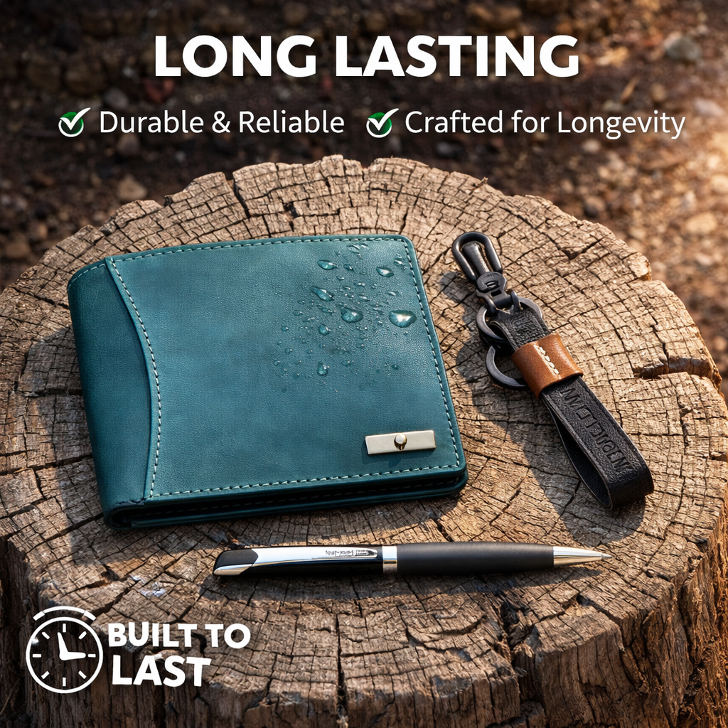 WildHorn Premium Men’s Gift Set – Leather Wallet, Pen & Keychain Combo